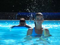 Für Badefans bietet der Campingplatz einen herrlichen, auf 28 Grad beheizten Pool. Sie ist während der ganzen Saison geöffnet und ermöglicht es, sich zu entspannen und die Freuden des Wassers bei jedem Wetter zu genießen. Liegestühle rund um das Becken laden zum Faulenzen und Sonnenbaden ein. Im Planschbecken können sich die Kinder sicher austoben, während die Grossen in wilden Wasserpolo-Partien herumtoben.